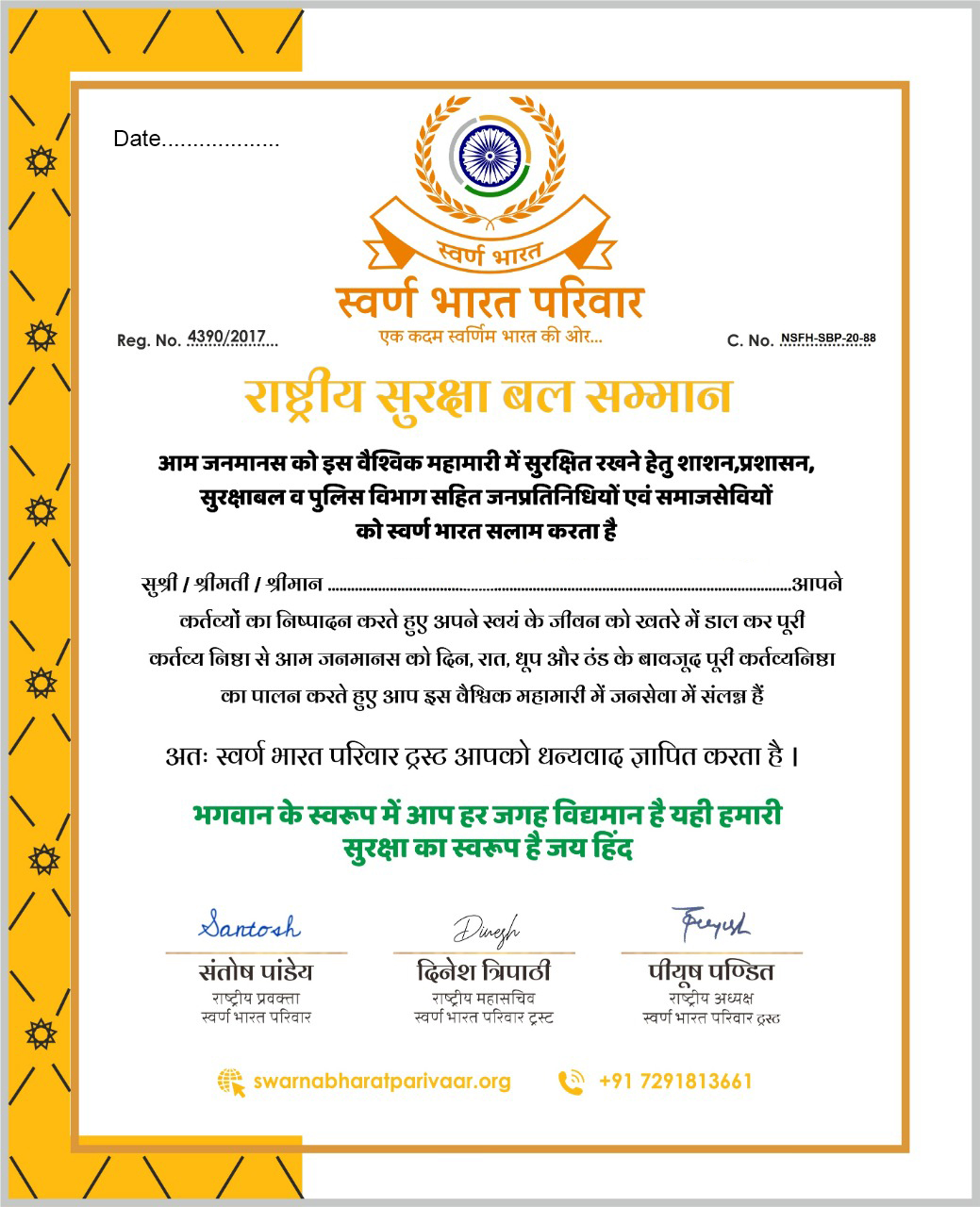 Swarna Bharat Parivaar provide 6 type of certificates Click here to get certificate what do you want